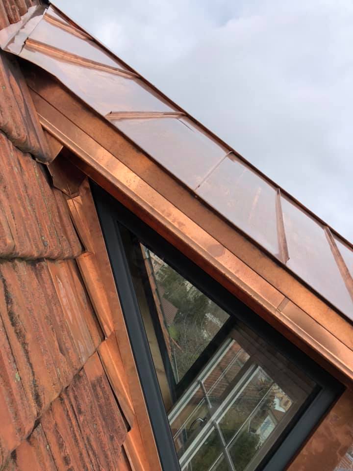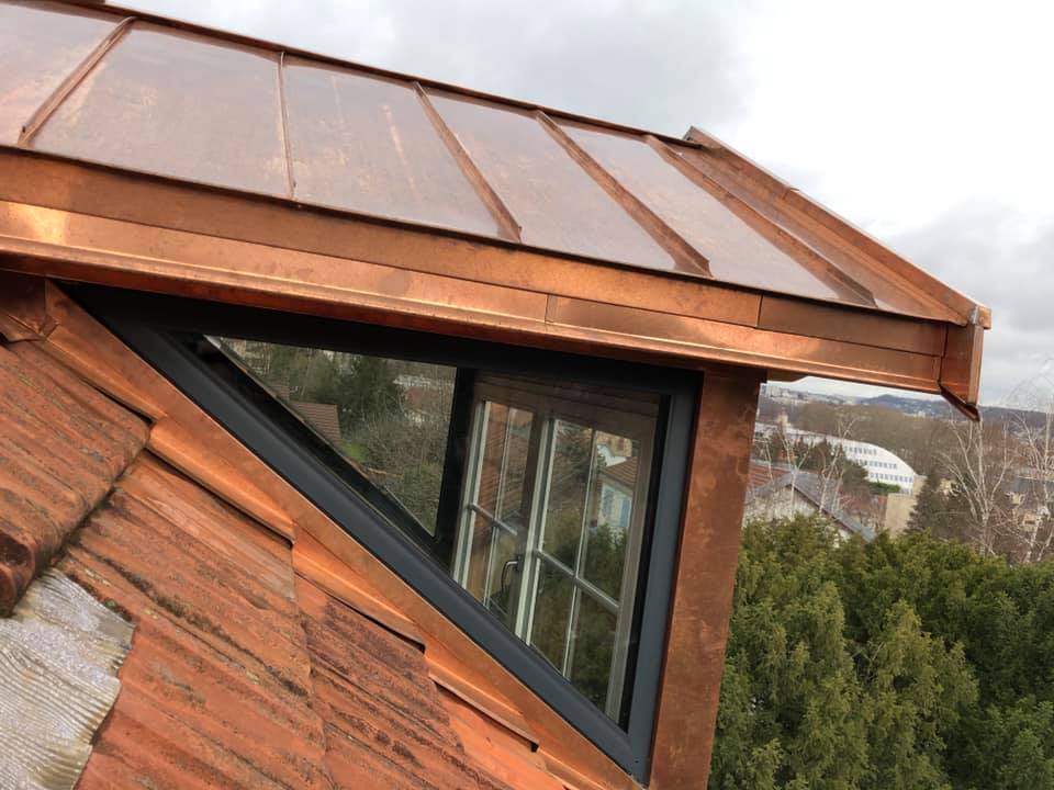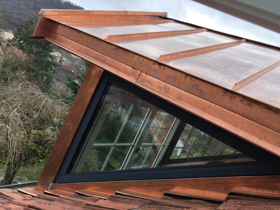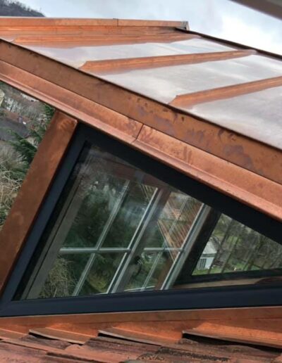 Création d’une lucarne, habillage cuivre 7/10 et couverture joint debout